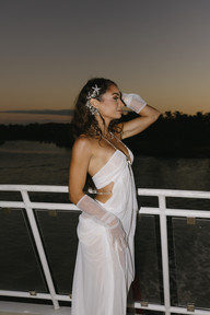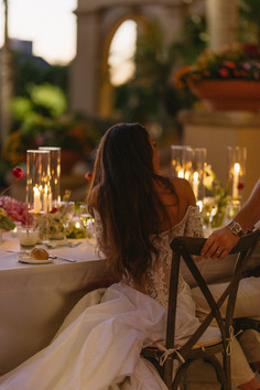 And then, their special touch. They invited every guest to arrive in sea-inspired costumes. Mermaids. Pirates. Sailors. Ocean muses. The terrace quickly filled with movement, texture, and laughter. It felt playful yet perfectly aligned with the coastal setting. Completely immersive. Completely them. From that very first night, you could tell this wouldn’t just be a beautiful wedding. It would be a deeply meaningful one.