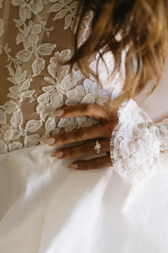 The gown, by Galia Lahav, was stunning. But what made it even more special were the hand-finished details created by her mom. She also made the gloves Jill would later wear for her second look, thoughtfully designed to perfectly match the dress. A gesture full of love, dedication, and meaning.
