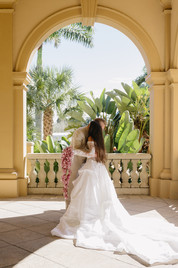 Jill got ready at the hotel, in a room overlooking the ocean. Soft natural light filled the space, the sea quietly reminding her that the day had arrived.
