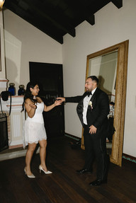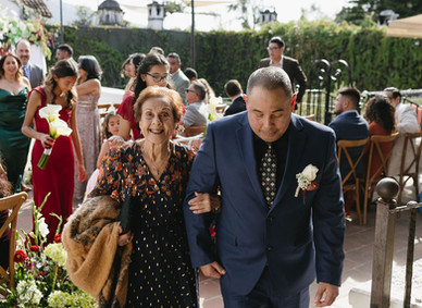 The reception was in the patio. That morning, Kevin's grandmother had fallen and dislocated her shoulder, just hours before her grandson's wedding. She had to be rushed to the hospital. When the first dance came, she wasn't there, so Kevin danced with his mother-in-law instead. That small gesture held so much tenderness and sadness at the same time. But the story didn't end there. After her shoulder was treated, she said she was going to her grandson's wedding no matter what. And she came. Sore, tired, but there. Some photos you take knowing you'll never forget them.